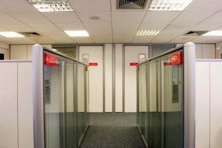 O biombo para escritório pode receber diferentes acabamentos, adaptando-se à identidade visual da empresa e ao projeto arquitetônico.